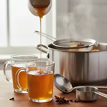 Do wciąż gorącego, przecedzonego napoju dodaj miód lub syrop klonowy, jeśli go używasz. Zacznij od jednej łyżki, dokładnie wymieszaj aż do całkowitego rozpuszczenia i spróbuj. Dodaj więcej, jeśli napój jest dla Ciebie za mało słodki. Podawaj eliksir natychmiast, na gorąco, w kubkach lub szklankach z grubego szkła, udekorowany plasterkiem świeżej pomarańczy lub dodatkową laską cynamonu.