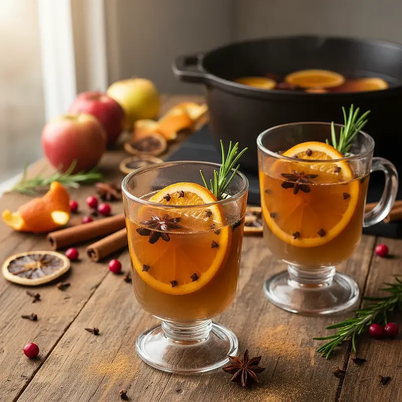 Aromatyczny, rozgrzewający napój, który jest kwintesencją jesiennych i zimowych wieczorów. Ten bezalkoholowy grzaniec bazuje na naturalnym soku jabłkowym, powoli podgrzewanym z bukietem korzennych przypraw, takich jak cynamon, goździki i anyż. Świeżości i cytrusowej nuty dodaje mu soczysta pomarańcza, a zaskakujący, leśny akcent wprowadza gałązka świeżego rozmarynu, który doskonale komponuje się ze słodyczą jabłek. Całość dopełnia naturalna słodycz miodu lub syropu klonowego. Wizualnie napój prezentuje się zjawiskowo – ma piękny, głęboki, złocisto-bursztynowy kolor, a podany w przezroczystych kubkach z plasterkiem pomarańczy i gałązką rozmarynu staje się ozdobą każdego stołu. Idealny na spotkania w gronie rodziny i przyjaciół, jako alternatywa dla tradycyjnego grzanego wina lub po prostu jako sposób na umilenie sobie chłodnego dnia.