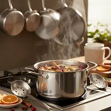 Podgrzewaj napój na średniej mocy, aż stanie się bardzo gorący, ale nie doprowadzaj go do wrzenia. Gdy na powierzchni zaczną pojawiać się pierwsze małe bąbelki, a z garnka będzie unosić się intensywna para, natychmiast zmniejsz moc palnika do minimum. Przykryj garnek pokrywką, pozostawiając małą szczelinę i pozwól napojowi 'naciągać' aromatami przez około 15-20 minut. Mieszaj od czasu do czasu.
