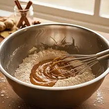 W dużym garnku z grubym dnem umieść masło, miód i cukier trzcinowy. Podgrzewaj na małej mocy palnika, ciągle mieszając drewnianą łyżką, aż wszystkie składniki się rozpuszczą i połączą w jednolitą, gładką masę. Uważaj, aby masa się nie zagotowała! Chodzi tylko o jej podgrzanie i rozpuszczenie składników. Zdejmij garnek z ognia i odstaw do całkowitego wystudzenia. To bardzo ważny krok – masa musi być zimna (w temperaturze pokojowej), zanim dodasz jajka, inaczej się zetną.