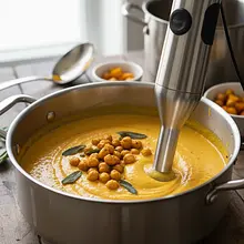 Rozgrzej piekarnik do 200°C z termoobiegiem (lub 220°C bez termoobiegu). Dokładnie umyj dynię Hokkaido pod bieżącą wodą. Połóż ją na stabilnej desce do krojenia. Użyj dużego, ostrego noża szefa kuchni, aby przekroić dynię na pół, od ogonka do podstawy. Następnie za pomocą łyżki wyjmij pestki i włóknisty miąższ ze środka. Każdą połówkę pokrój w grube plastry o szerokości około 3-4 cm. Skórka dyni Hokkaido jest jadalna i staje się miękka po upieczeniu, więc nie musisz jej obierać.