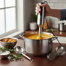 Zdejmij garnek z ognia. Używając blendera ręcznego (żyrafy), zmiksuj zupę bezpośrednio w garnku na idealnie gładki, aksamitny krem. Wykonuj ruchy w górę i w dół, aby wciągnąć wszystkie kawałki warzyw. Miksuj przez około 2-3 minuty. Jeśli nie masz blendera ręcznego, przelewaj zupę partiami do blendera kielichowego i miksuj do uzyskania gładkości.