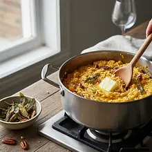 Rozgrzej piekarnik do 200°C (termoobieg). Dynię umyj, przekrój na pół i usuń pestki za pomocą łyżki. Nie obieraj skórki. Pokrój dynię na mniejsze kawałki (ok. 3-4 cm), ułóż na blasze wyłożonej papierem do pieczenia, skrop lekko oliwą i piecz przez 20-25 minut, aż miąższ będzie całkowicie miękki (sprawdź widelcem). Po upieczeniu lekko ostudź, a następnie oddziel miąższ od skórki (powinien łatwo odchodzić) i zblenduj na gładkie purée. Odmierz potrzebne 400g purée.