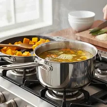 Zmniejsz ogień do średnio-niskiego. Za pomocą chochelki wlej do ryżu pierwszą porcję gorącego bulionu – tyle, aby ledwo przykryć ryż. Mieszaj powoli i niemal bez przerwy, aż ryż wchłonie cały płyn. Dopiero wtedy dodaj kolejną chochelkę bulionu. Powtarzaj ten proces cierpliwie.