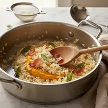 Rozgrzej piekarnik do 200°C (termoobieg). Dynię Hokkaido dokładnie umyj, przekrój na pół i za pomocą łyżki usuń nasiona oraz włóknisty miąższ. Pokrój dynię na mniejsze kawałki (ok. 3-4 cm), ułóż na blasze wyłożonej papierem do pieczenia skórką do dołu. Piecz przez około 20-25 minut, aż miąższ będzie całkowicie miękki (sprawdź widelcem - powinien wchodzić bez oporu). Po upieczeniu lekko ostudź, a następnie oddziel miąższ od skórki (powinien łatwo odchodzić) i zblenduj na gładkie purée. Odstaw na bok.