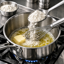 Przygotowanie sosu: na średnim ogniu w rondlu rozpuść 15 g masła. Dodaj 15 g mąki pszennej i energicznie mieszaj trzepaczką 1-2 minuty, aż zrobi się jasnozłota zasmażka. Stopniowo wlewaj 200 ml bulionu warzywnego i 150 ml wody po moczeniu borowików (jeśli jest bardzo mętna, użyj 100 ml), cały czas mieszając, aby nie powstały grudki. Dodaj 80-100 g posiekanych wcześniej podsmażonych borowików z farszu lub podsmaż kilka łyżek świeżych grzybów na 10 g masła i dodaj do sosu. Gotuj 5-7 minut na małym ogniu, a następnie zmniejsz ogień i dodaj 200 g śmietany, dopraw 2 g pieprzu czarnego i ewentualnie szczyptą soli. Sos jest gotowy, gdy dokładnie pokrywa łyżkę i ma gładką, kremową konsystencję.