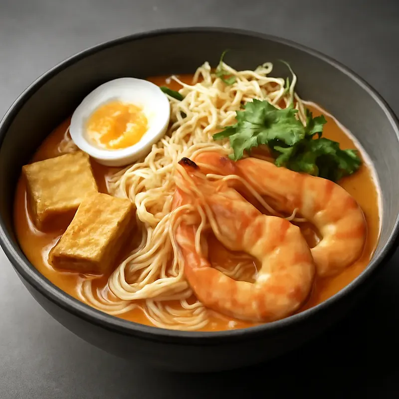 Laksa to aromatyczna zupa z Singapuru i Malezji, łącząca wpływy chińskie, malajskie i indyjskie. Kremowy bulion kokosowy z pastą laksa, przesiąknięty aromatem galangalu i chili, otula grube noodles i krewetki. Tofu puffs, kiełki i jajko na twardo dopełniają kompozycję. Gorąca, pikantna i kojąca - laksa rozgrzewa ciało i duszę w każdych warunkach pogodowych.