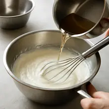 Napęcznij żelatynę: wsyp 12 g żelatyny do małej miseczki, dodaj 60 ml zimnej wody, wymieszaj i odstaw na 5–10 minut, aż żelatyna napęcznieje i utworzy jednorodną, gęstą masę.