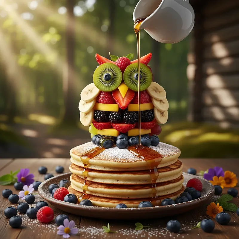 To nie są zwykłe placuszki! To magiczne, leśne śniadanie, które zamieni każdy poranek w przygodę. Puszyste, delikatne placuszki z dodatkiem soczystych borówek amerykańskich, podane w formie uroczej sowy, to idealny sposób, by zachęcić małych niejadków do jedzenia. Danie jest nie tylko pyszne, ale i atrakcyjne wizualnie, pobudzając dziecięcą wyobraźnię. Słodycz dojrzałych bananów i truskawek doskonale komponuje się z lekką kwasowością borówek, tworząc zbalansowany i bogaty smak. Przygotowanie dekoracji to świetna okazja do wspólnej zabawy w kuchni, a efekt końcowy z pewnością wywoła uśmiech na twarzy każdego dziecka. To pożywne i pełne witamin śniadanie, które dostarcza energii na cały dzień pełen zabawy.