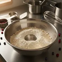 Przygotuj suche składniki. Do dużej miski (o pojemności około 2-3 litrów) wsyp mąkę, cukier, proszek do pieczenia oraz sodę oczyszczoną. Weź trzepaczkę rózgową i dokładnie wymieszaj wszystkie składniki przez około 30 sekund. Dzięki temu spulchniacze równomiernie rozprowadzą się w mące, co zapewni, że wszystkie placuszki będą równo rosły.