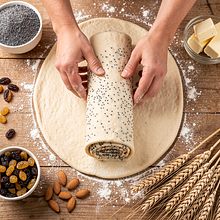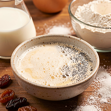 Przygotuj rozczyn. Podgrzej 100 ml mleka do temperatury 35-37°C (powinno być przyjemnie ciepłe, nie gorące — sprawdź wewnętrzną stroną nadgarstka). Pokrusz 30 g drożdży świeżych do małej miski, dodaj 1 łyżkę (ok. 12 g) cukru z ogólnej ilości i 2 łyżki mąki (ok. 30 g). Wlej ciepłe mleko i wymieszaj widelcem tylko do rozwiązania drożdży, nie ubijaj. Odstaw na 10 minut w ciepłe miejsce — powinny pojawić się bąbelki i pienista czapka, co oznacza aktywne drożdże.