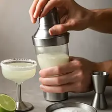 Zamknij shaker szczelnie kieliszkiem lub pokrywką i energicznie potrząsaj przez 10–15 sekund. Celem jest szybkie schłodzenie i lekkie rozcieńczenie napoju przez stopienie niewielkiej ilości lodu. Początek potrząsania powinien być zdecydowany i rytmiczny; po około 10 sekundach odczujesz, że zewnętrzna część shakera jest bardzo zimna i pojawia się skroplina — to znak, że mieszanie było wystarczające.