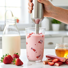 Orzeźwiający napój na bazie polskiej maślanki, z sezonowymi truskawkami i rabarbarem. To lekki, kwaskowo-słodki koktajl idealny na wiosenne śniadanie lub podwieczorek — maślanka daje kremową słono-kwaśną podstawę, truskawka wprowadza słodycz i czerwony kolor, a rabarbar doda charakterystycznej kwasowości i świeżości. Napój jest szybki w przygotowaniu (ok. 5 minut), można go podać z lodem i listkami mięty; dobrze komponuje się z pełnoziarnistym pieczywem, naleśnikami lub sernikiem na zimno jako lekki dodatek. Estetycznie: jasnoróżowy kolor z widocznymi kawałkami owoców i zielonym akcentem mięty.
