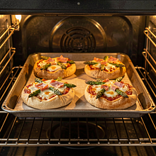 Nagrzej piekarnik do 200°C (góra-dół) lub 180°C z termoobiegiem. Włóż ruszt na środkową półkę. Wyłóż dużą blachę papierem do pieczenia — najlepiej użyj dwóch blaszek, jeśli nie zmieścisz wszystkich mini pizz na jednej.