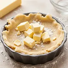 Uformuj z ciasta dysk, owiń go folią spożywczą i schładzaj w lodówce 30 minut. Schłodzone ciasto będzie łatwiejsze do uciskania w formach i mniej się skurczy podczas pieczenia.
