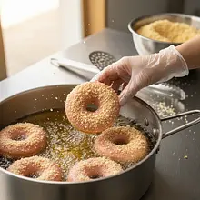 W szerokim, płaskim garnku rozgrzej smalec lub olej. Tłuszczu powinno być tyle, aby pączki swobodnie w nim pływały (około 1 litra). Idealna temperatura to 175-180°C. Jeśli nie masz termometru, wrzuć kawałek ciasta – jeśli wypłynie i zarumieni się w ciągu minuty, tłuszcz jest gotowy. Zmniejsz ogień do średniego, aby utrzymać temperaturę.