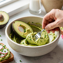 Kremowa pasta z awokado podana na ciepłym kromce chleba żytniego to szybka, wiosenna przekąska idealna na śniadanie lub lekką kolację. Danie łączy tłustość awokado i oliwy z kwasową świeżością cytryny oraz ostrością rzodkiewki i aromatem szczypiorku. Wygląda apetycznie dzięki żywej zieleni pasty i czerwonym plasterkom rzodkiewki — świetnie komponuje się z herbata ziołową, lekką sałatką z młodych warzyw lub jajkiem na miękko. Proste składniki dostępne w polskich sklepach, szybkie wykonanie i warianty wegańskie oraz z dodatkiem twarogu dla miłośników nabiału.