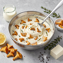 Kremowa pasta z młodych kurek i sera białego (twarogu) to polsko-nowoczesna przekąska łącząca leśny aromat grzybów z delikatnością twarogu. Idealna na ciepłe kromki chleba wiejskiego lub do placków ziemniaczanych jako starter. Danie ma wyraźny, lekko maślany smak z nutą soku z cytryny dla przełamania tłustości oraz świeżych ziół dla świeżości. Pasta świetnie sprawdzi się na przyjęciach wiosennych, piknikach i jako elegancka zakąska przed głównym posiłkiem. Wygląd: złociste, rumiane kurki otulone białą, kremową masą z drobnymi zielonymi akcentami z ziół.