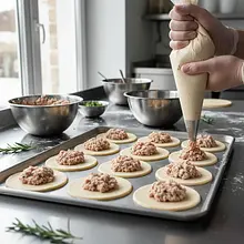 Zacznij od przygotowania zaczynu drożdżowego. W małej miseczce umieść pokruszone świeże drożdże. Dodaj jedną łyżeczkę cukru i rozetrzyj je razem łyżką, aż drożdże staną się płynne. Następnie dodaj jedną łyżkę mąki i około 2-3 łyżki ciepłej (ale nie gorącej!) wody lub mleka. Dokładnie wymieszaj, aby nie było grudek. Przykryj miseczkę ściereczką i odstaw w ciepłe miejsce na 10-15 minut. Zaczyn jest gotowy, gdy znacznie zwiększy swoją objętość i na powierzchni pojawi się piana.
