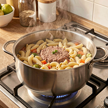 Pasztet ma w Polsce długą tradycję — od staropolskich pasztetów z drobiu i dziczyzny po nowoczesne wersje. Połączenie makaronu z masą mięsną to współczesny twist, który dodaje struktury i przyjemnego przełamania tekstury.