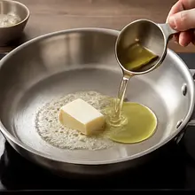 Rozgrzej patelnię na średnim ogniu. Dodaj masło i olej rzepakowy. Gdy masło się rozpuści (ok. 30–60 sekund), dodaj pokrojoną cebulę i smaż 6–8 minut, mieszając co 1–2 minuty, aż cebula będzie szklista i lekko złocista. Na koniec dodaj czosnek i smaż 30–45 sekund, aż poczujesz aromat. Przełóż na talerz i odstaw do ostygnięcia.