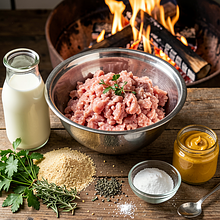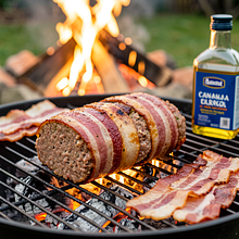 Rustykalna pieczeń rzymska przygotowana z wieprzowiny i boczku, doprawiona majerankiem i natką pietruszki, upieczona nad żarem ogniska. To polska, regionalna wariacja klasycznej pieczeni, w której wędzony tłuszcz boczku nadaje mięsnej masie wilgotności i dymnego aromatu. Idealna na rodzinny piknik lub majówkę; świetnie smakuje z młodymi ziemniakami z koperkiem, ogórkową mizerią lub sałatką z wiosennych zielenin. Danie ma kontrastową strukturę: w środku soczysta, delikatnie puszysta masa, na zewnątrz chrupiący plaster boczku i lekko spieczona skórka. Przepis pokazuje krok po kroku przygotowanie farszu, formowanie pieczeni i bezpieczne pieczenie nad rozżarzonymi węglami, z praktycznymi wskazówkami dla osób piekących pierwszy raz na ognisku.