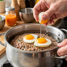 Przygotuj jajka na twardo do wnętrza pieczeni: włóż 2 jajka do średniego garnka i zalej zimną wodą tak, aby woda zakrywała jajka o około 2 cm. Postaw garnek na dużym ogniu i doprowadź do wrzenia. Gdy woda zacznie wrzeć, zmniejsz ogień do średniego i gotuj przez 8-9 minut od momentu wrzenia (nie więcej — dzięki temu żółtko nie zrobi się zielone). Po ugotowaniu przelej jajka zimną wodą i odstaw do wystudzenia, po czym obierz ze skorupki.