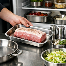 Przygotuj schab: wyjmij mięso z lodówki na 30 minut przed obróbką, aby osiągnęło temperaturę pokojową. Umyj ręcznie kawałek schabu i osusz papierowym ręcznikiem. Jeśli są cienkie błony, delikatnie je odetnij ostrym nożem. Jeśli kształt jest nierówny, obwiąż schab sznurkiem kuchennym co 3–4 cm, aby pieczeń miała równomierny kształt i piekła się równomiernie.