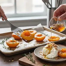 Wstaw blachę z brzoskwiniami do nagrzanego piekarnika. Piecz przez 15-20 minut. Czas pieczenia zależy od dojrzałości i wielkości owoców. Gotowe brzoskwinie powinny być miękkie (sprawdź wbijając w nie czubek noża – powinien wejść bez oporu), a ich brzegi lekko zarumienione i skarmelizowane. Soki owocowe zaczną bulgotać na powierzchni.