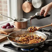 Danie najlepiej prezentuje się na głębokich, białych lub grafitowych talerzach, które pięknie podkreślą głęboki kolor sosu śliwkowego. Na środek talerza wyłóż porcję gładkiego purée, na nim ułóż 4-5 klopsików, a całość polej obficie sosem. Można udekorować listkami świeżego tymianku lub uprażonymi płatkami migdałów dla dodania chrupkości i elegancji.