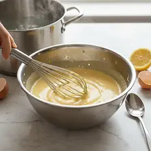 Do miski umieszczonej nad parującą wodą dodaj żółtka, sok z cytryny i łyżkę wody. Natychmiast zacznij energicznie ubijać całość za pomocą trzepaczki rózgowej. Ubijaj bez przerwy przez około 3-4 minuty. Mieszanina powinna stać się blada, puszysta i podwoić swoją objętość, a na jej powierzchni powinny zostawać ślady po trzepaczce. To jest kluczowy moment - żółtka muszą być odpowiednio napowietrzone i podgrzane, aby stworzyć stabilną emulsję.