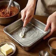 Przygotuj prostokątną formę (np. 25x30 cm) lub tortownicę śr. 24 cm — nasmaruj dno i boki masłem i wyłóż papierem do pieczenia. Przełóż ciasto do formy, wygładź powierzchnię. Piecz w nagrzanym piekarniku w temperaturze 160°C (z termoobiegiem 150°C) przez 45-55 minut. Po 40 minutach sprawdź patyczkiem — powinien wyjść z kilkoma wilgotnymi okruchami, ale nie surową masą. Całkowite upieczenie ocenisz gdy ceremonia zapachu korzennego i lekka sprężystość powierzchni pojawią się po dotknięciu (ok. 45-55 min).