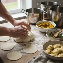 Pierogi, choć uważane za kwintesencję polskiej kuchni, mają swoje odpowiedniki na całym świecie – od włoskich ravioli, przez chińskie jiaozi, po gruzińskie chinkali. Ten przepis to ukłon w stronę globalnej tradycji 'pierożkowej', pokazujący, jak tradycyjne formy mogą być nośnikiem zupełnie nowych, ekscytujących smaków.