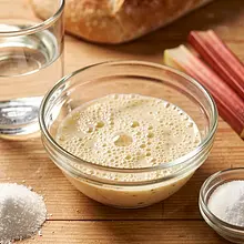 Aktywacja drożdży: w małej misce wlej 100 ml wody o temperaturze około 35°C (powinna być przyjemnie ciepła, nie gorąca). Do tej wody dodaj 5 g cukru (odmierzonej z całej ilości) i pokrusz drożdże świeże. Wymieszaj widelcem przez 20–30 sekund aż drożdże się rozpuszczą. Odstaw na 8–10 minut w ciepłe miejsce — na powierzchni powinna pojawić się piana lub «czapka», co oznacza, że drożdże są aktywne.