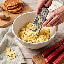 Obieranie i tarcie ziemniaków: obierz ziemniaki nożem do obierania i od razu wkładaj do miski z zimną wodą (zapobiega ściemnieniu). Następnie każdy ziemniak zetrzyj na tarce o dużych oczkach bezpośrednio do dużej miski. Staraj się trzeć szybko, by skrobia nie zdążyła utlenić się.