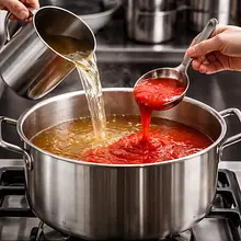Do dużego garnka (min. 2,5–3 l) wlej 1600 ml zimnego lub letniego rosołu. Dodaj przygotowaną passata pomidorowa 400 g i dokładnie wymieszaj drewnianą łyżką. Dodaj podsmażoną cebulę wraz z wytopionym masłem. Postaw garnek na średnim ogniu i doprowadź zupę do delikatnego wrzenia (małe bąbelki przy brzegu). Zmniejsz ogień do małego, dodaj 10 g cukru, 4 g soli i 2 g pieprzu, zamieszaj i gotuj na wolnym ogniu 10-12 minut, aby smaki się połączyły i zupa nabrała gładkości. Po tym czasie sprawdź smak i ewentualnie dosól lub dopieprz.