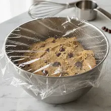 Przykryj miskę z ciastem folią spożywczą, tak aby folia dotykała powierzchni ciasta (zapobiegnie to tworzeniu się skórki). Wstaw miskę do lodówki na minimum 60 minut, a najlepiej na 2 godziny. Ciasto musi mocno stężeć, aby dało się z niego formować kulki.