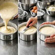 Przelej masę do przygotowanej formy (18 cm). Wyrównaj wierzch szpatułką, stuknij delikatnie formą o blat, aby wypuścić większe pęcherze powietrza. Wstaw formę do większej blachy lub brytfanny i wlej do niej gorącą (nie wrzącą) wodę tak, aby sięgała do połowy wysokości formy z masą. Przykryj górę tortownicy luźno arkuszem folii aluminiowej (nie przylegaj do masy). Piecz w nagrzanym piekarniku 50–60 minut w 160°C. Po 50 minutach sprawdź: brzegi powinny być ścięte, środek delikatnie trząść się przy potrząśnięciu — powinien być sprężysty, ale nie płynny.