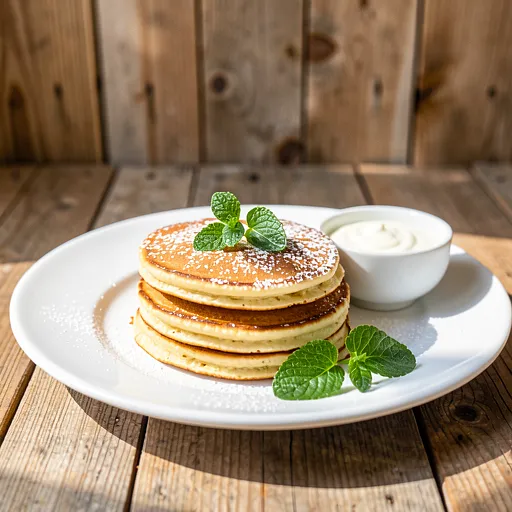 Serwuj racuchy gorące, z chłodną śmietaną kwaśną lub jogurtem naturalnym. Dla kontrastu tekstur dodaj chrupiące jabłko pokrojone w cienkie plasterki lub odrobinę miodu zamiast cukru pudru. Ułóż kilka listków świeżego szczawiu obok dla dekoracji.
