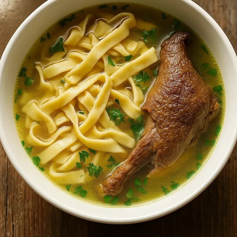 Sprawdź kawałki gęsiny: usuń ewentualne drobne piórka i nadmiar krwi przy kościach. Osusz mięso papierowym ręcznikiem — suche mięso będzie się lepiej rumienić. Rozgrzej piekarnik do 200°C (góra-dół). Ułóż gęsie części na blaszce z brzegiem, skórą do góry. Piecz 30-40 minut aż skóra będzie mocno zrumieniona i zacznie się wytapiać tłuszcz. Celem jest złoty, mocno aromatyczny kolor, nie wysuszenie mięsa.