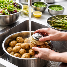 Umyj ziemniaki pod bieżącą wodą szczotką do warzyw, nie obieraj jeśli są młode. Włóż ziemniaki do średniego garnka, zalej zimną wodą tak, aby woda przykrywała ziemniaki na 2 cm. Dodaj 1 łyżeczkę soli (ok. 5 g) do wody. Postaw garnek na dużym ogniu i doprowadź do wrzenia, po zagotowaniu zmniejsz ogień do średniego i gotuj 12-15 minut, aż ziemniaki będą miękkie przy nakłuciu widelcem (widelec wchodzi łatwo bez rozpadania).