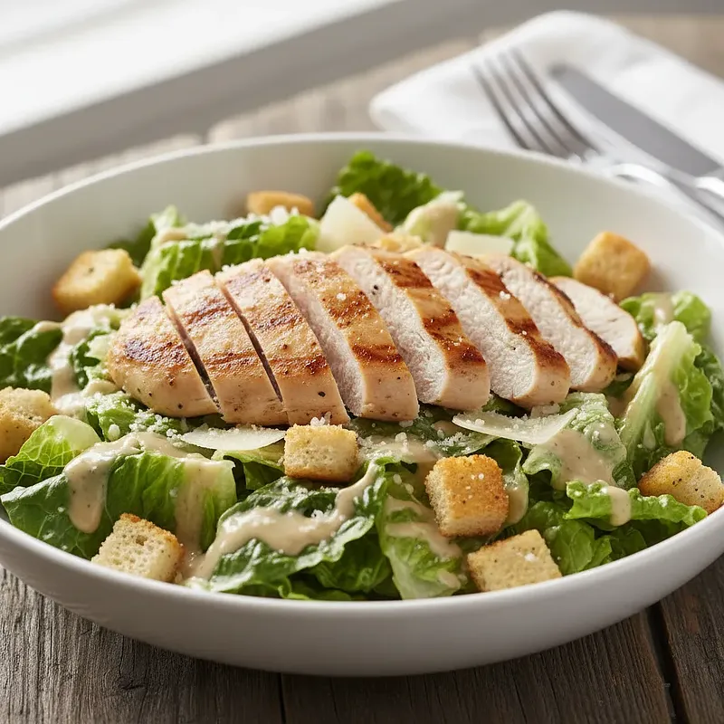 Klasyczna sałatka Cezar to kwintesencja elegancji i prostoty, idealna na sylwestrową kolację. Jej historia sięga lat 20. XX wieku i meksykańskiej Tijuany, gdzie włoski restaurator Caesar Cardini stworzył ją z dostępnych pod ręką składników. Nasza wersja wzbogacona jest o soczystego, grillowanego kurczaka, co czyni ją pełnoprawnym daniem. Sekret tkwi w idealnym balansie smaków: chrupkości świeżej sałaty rzymskiej, intensywności domowych, czosnkowych grzanek, słoności parmezanu i kremowego, lekko pikantnego sosu z nutą anchois. To danie, które zachwyca nie tylko smakiem, ale i wyglądem – kontrast zieleni, złocistych grzanek i białego sera tworzy apetyczną kompozycję. Podawaj ją jako elegancką przystawkę lub lekkie danie główne, które z pewnością zaimponuje gościom.