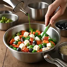 Polej sałatkę oliwą z oliwek i delikatnie wymieszaj, aby wszystkie składniki się połączyły.