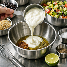 W misce o pojemności około 500 ml przygotuj dressing: wlej 150 g jogurtu naturalnego, dodaj 45 g oleju rzepakowego, 60 ml soku z limonki, 4 g mielonego kminu rzymskiego, 2 g wędzonej papryki, 10 g (2 ząbki) drobno posiekanego lub przeciśniętego czosnku, 4 g soli i 2 g pieprzu. Energicznie wymieszaj łyżką do uzyskania jednolitej emulsji. Spróbuj i dopraw sokiem z limonki lub solą do smaku.