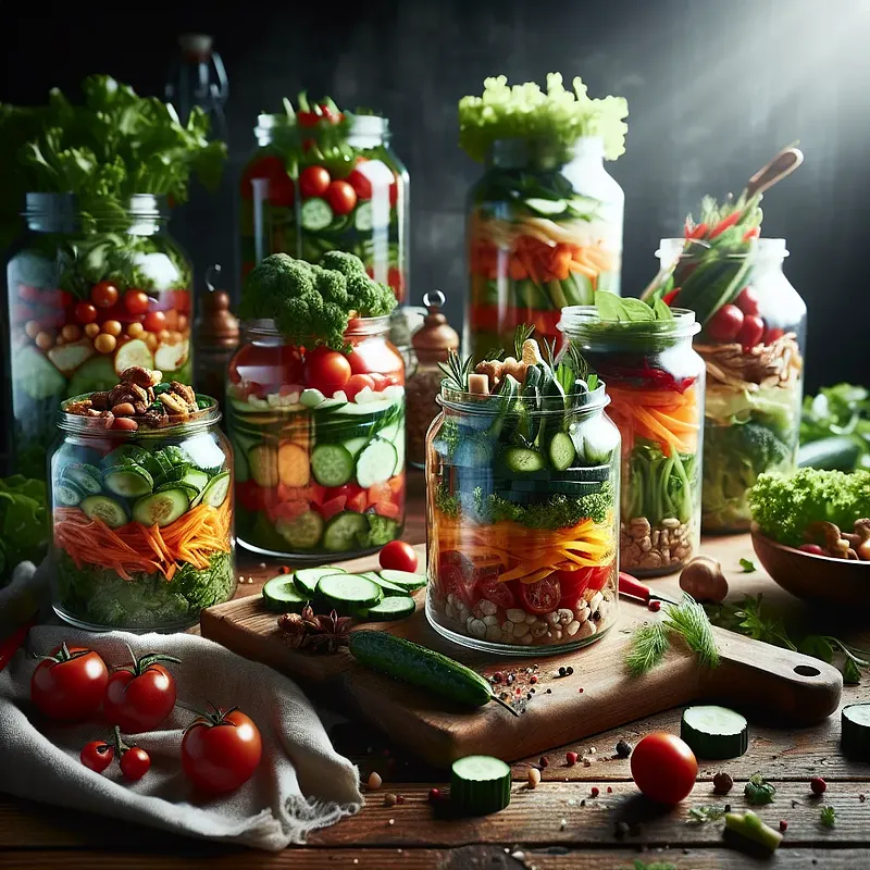 Przechowywanie sałatek warzywnych w słoikach sięga praktyk domowego przetwórstwa XIX–XX wieku — słoiki nie tylko chroniły jedzenie przed zepsuciem, ale także umożliwiały transport i efektowną prezentację potraw.