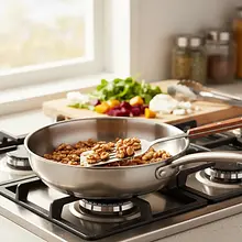 Przygotuj orzechy. Rozgrzej małą, suchą patelnię (bez dodatku tłuszczu) na średniej mocy palnika. Gdy patelnia będzie ciepła, wsyp na nią orzechy włoskie. Praż je przez 3-4 minuty, często potrząsając patelnią lub mieszając drewnianą łyżką, aby się nie przypaliły. Orzechy są gotowe, gdy zaczną intensywnie pachnieć i lekko się zarumienią. Uważaj, bo bardzo łatwo je spalić. Gotowe orzechy natychmiast zdejmij z patelni i przesyp na talerzyk, aby ostygły. Po ostygnięciu grubo je posiekaj nożem.