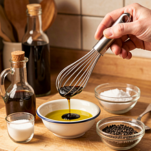 W małej misce połącz oliwę z oliwek (30 g), sól (2 g) i świeżo mielony pieprz (1 g). Jeśli używasz octu balsamicznego (opcjonalnie), dodaj 15 g i dokładnie wymieszaj widelcem lub trzepaczką do uzyskania jednolitego dressingu. Spróbuj i w razie potrzeby dopraw jeszcze szczyptą soli.