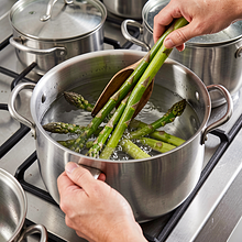 Blanszuj szparagi w dużym garnku wrzącej, lekko osolonej wody przez 1-2 minuty (zależnie od grubości), aż będą jasnozielone i sprężyste. Natychmiast przełóż do miski z lodowatą wodą, aby zatrzymać proces gotowania i zachować kolor.