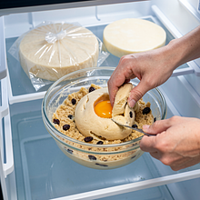 Przygotuj składniki na kruche ciasto: przesiej mąkę do dużej miski, dodaj 50 g cukru i szczyptę soli (1 g). Masło wyjmij z lodówki i pokrój na małe kostki (ma być bardzo zimne). Dodaj kostki masła do mąki. Rozcieraj masło z mąką palcami lub użyj siekacza do ciasta/robota z hakiem do ciasta, aż mieszanina przypomina grube okruchy (wielkość ziaren grochu).