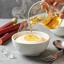 Podawaj pucharki mocno schłodzone. Dla dzieci pokrój większe kawałki rabarbaru na mniejsze, miękkie porcje lub przecedź kompot. Możesz przygotować wersję bez miodu dla maluchów poniżej 1 roku.